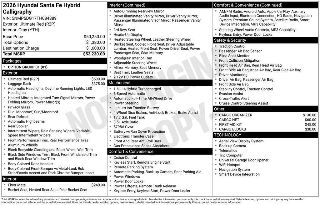 - Vehicle Name: Hyundai Santa Fe Hybrid