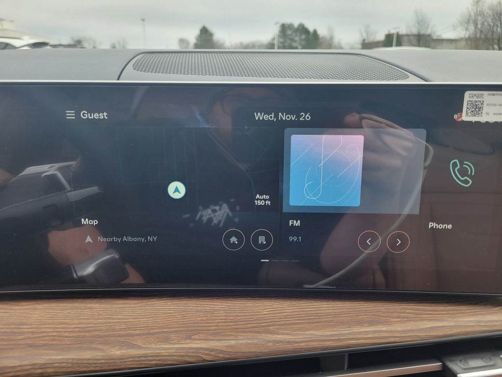 - Radio: AM/FM/HD Bose Premium Audio System -inc: 12 speakers including subwoofer, external amplifier, 12.3" wide touchscreen, Apple CarPlay and Android Auto, Bluetooth® hands-free w/wireless audio streaming, dynamic voice recognition, USB connectivity, SiriusXM, Blue Link+ connected car system, over-the-air updating capability, navigation system including traffic flow w/incident data via HD Radio (HERE) and rear seat quiet mode