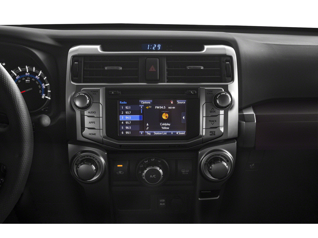 - Radio: Entune Premium Audio w/Navigation -inc: Entune App Suite, 6.1" high-resolution touch-screen w/split-screen display, AM/FM cache radio, HD Radio, CD player, 8-speakers, auxiliary port, USB 2.0 port w/iPod connectivity and control, advanced voice recognition, hands-free phone capability, phone book access and music streaming via Bluetooth® wireless technology, Siri Eyes Free, HD Radio predictive traffic and Doppler weather overlay and SiriusXM satellite radio w/3-month all access trial Access to Entune services is subscription free. See toyota.com/entune for details.