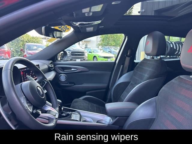 The interior of the Hornet R/T Plus is a masterful blend of style and functionality. Slip into the plush, supportive Alcantara-trimmed seats and enjoy the convenience of the 10.25-inch Uconnect 5 infotainment system, complete with seamless smartphone integration through Apple CarPlay and Android Auto. The premium harman/kardon® audio system will elevate your listening experience, while the power moonroof and liftgate add an extra touch of luxury and convenience.